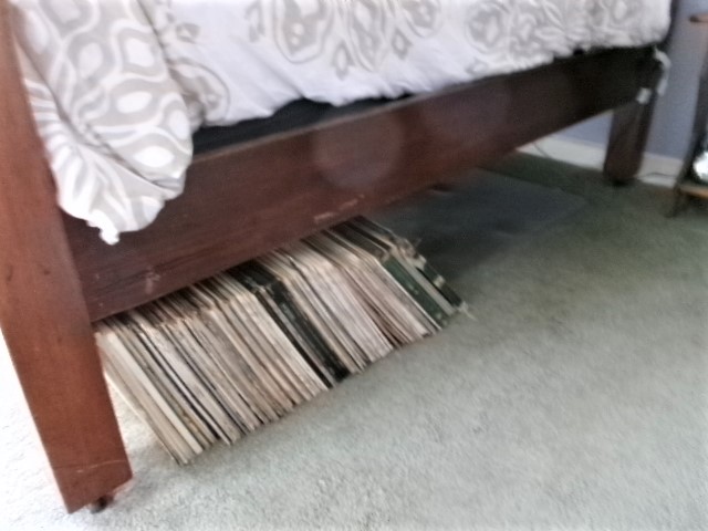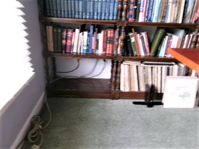 A new internet provider landed in the neighborhood, and we watched as they strung wire up and down the streets. Two neighbors signed up just before I did, and they have been pleased with their service for several days. Mine is being installed today. The first instruction I had was to move everything three feet away from the area they need to access inside the house. I was aware of the wires in John’s office, but I never paid much attention to them. I was shocked that the service came into the house behind the biggest bookcases we’ve ever owned. I removed a yard of vinyl records, storing them under my bed.