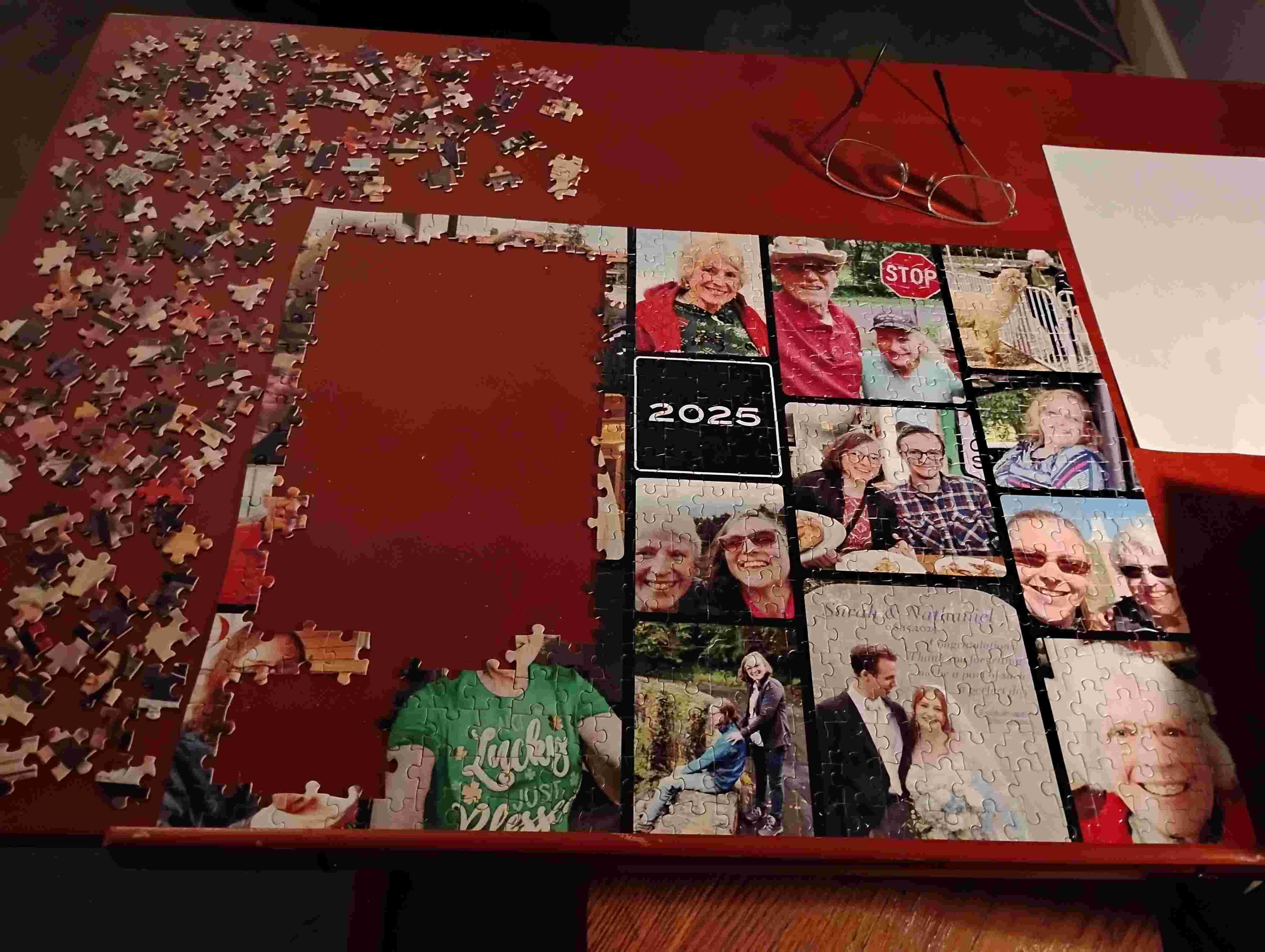 I stopped to put a few pieces in the jigsaw puzzle as I went by it. David had worked half of the right side days before, and I finished that third. I love working a puzzle in sections! It’s a manageable challenge.