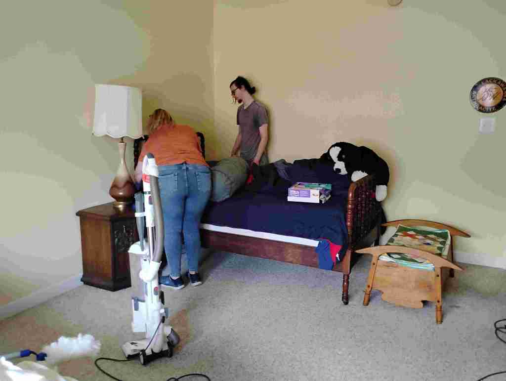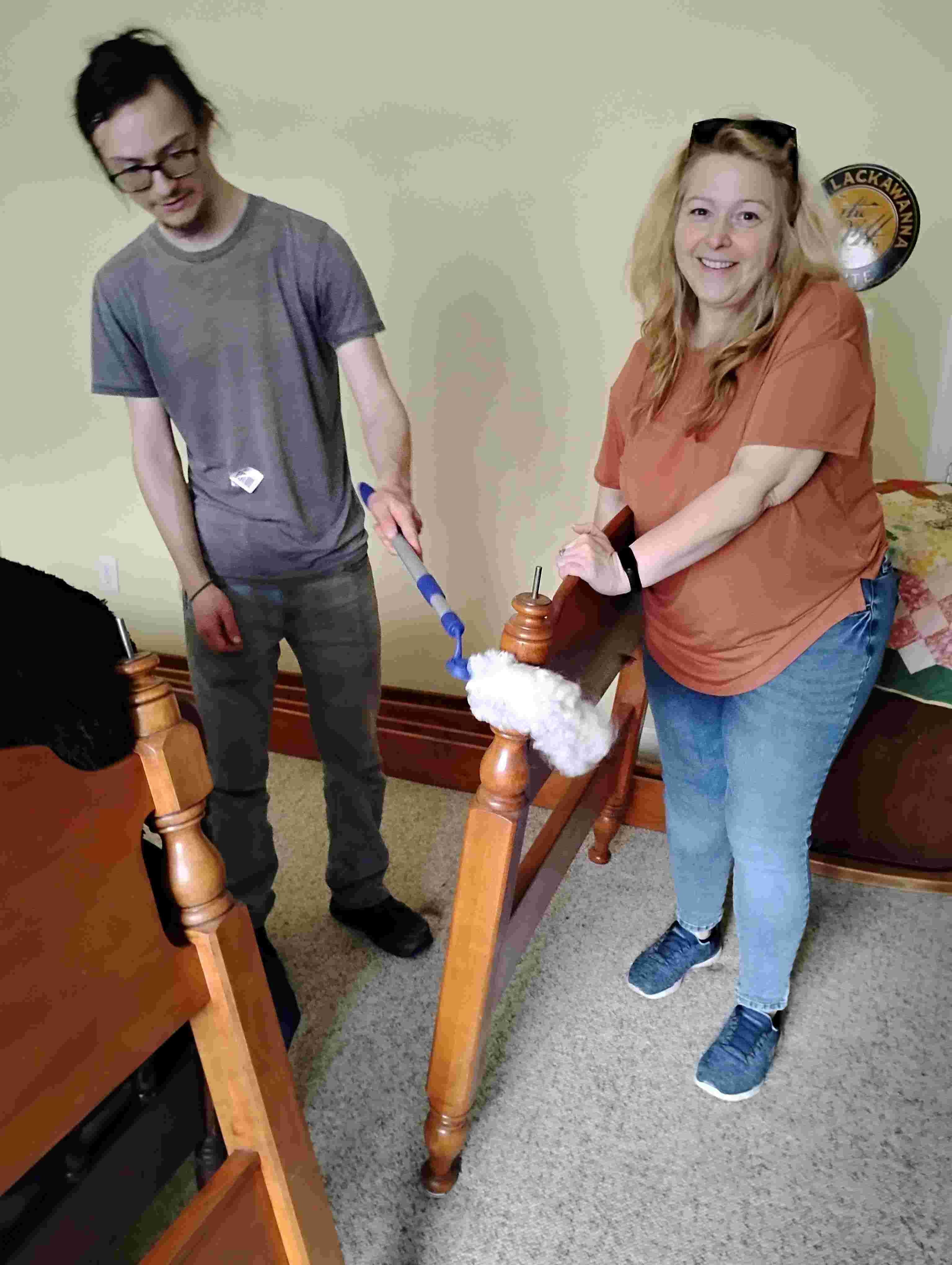 David was very willing to move furniture with Lise. Both worked really hard to dismantle the bunk bed that had come from my parents’ house years ago. My brother had it first as his childhood bed, then my parents used it as twin beds. After Dad’s death, it came to my house, was moved to NC, and was David’s bed for several years. I’m not ready to let it go yet.