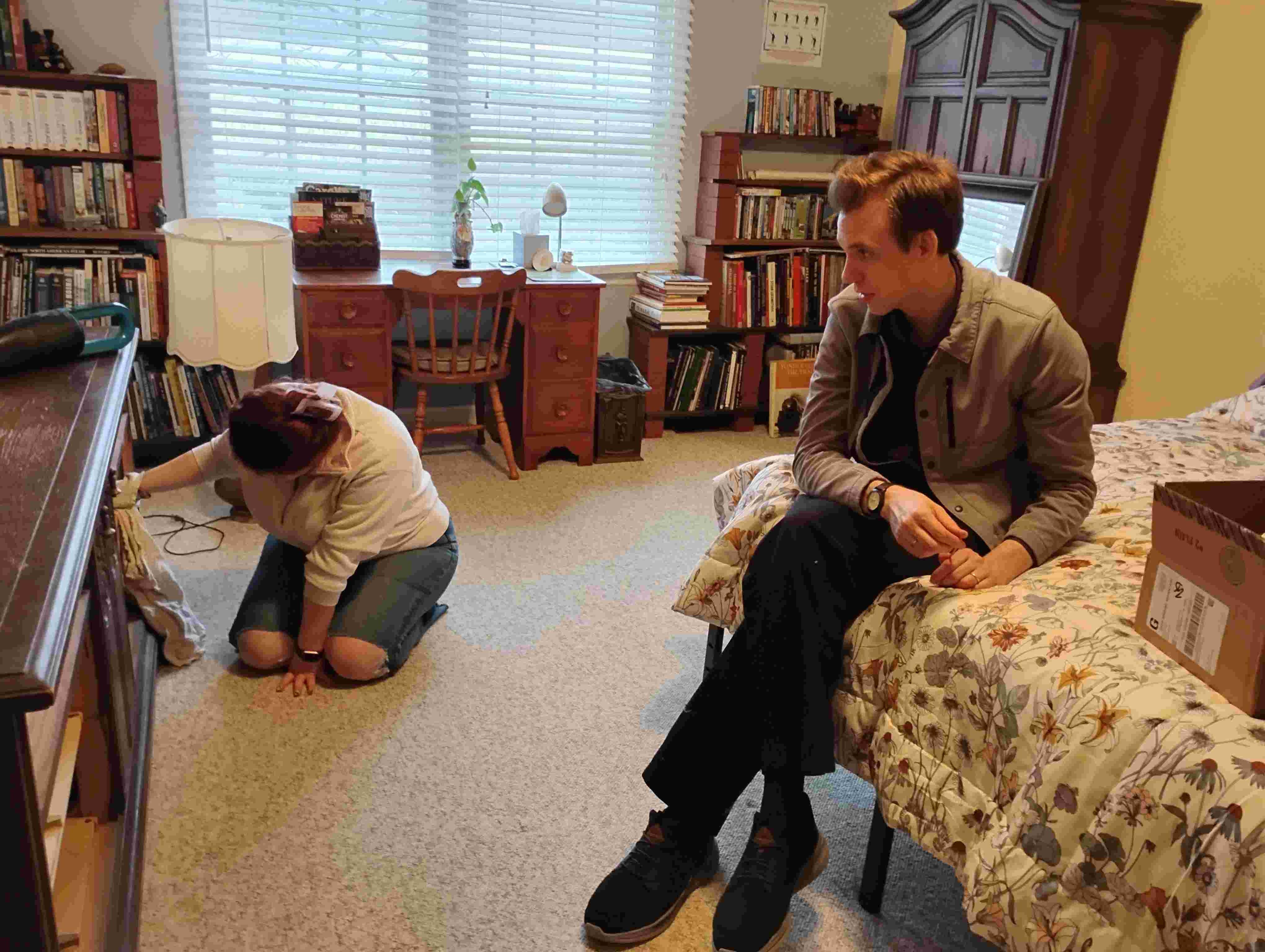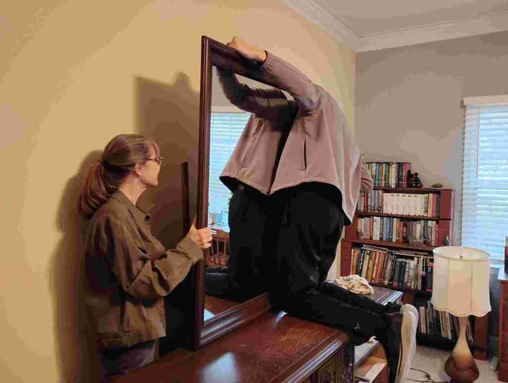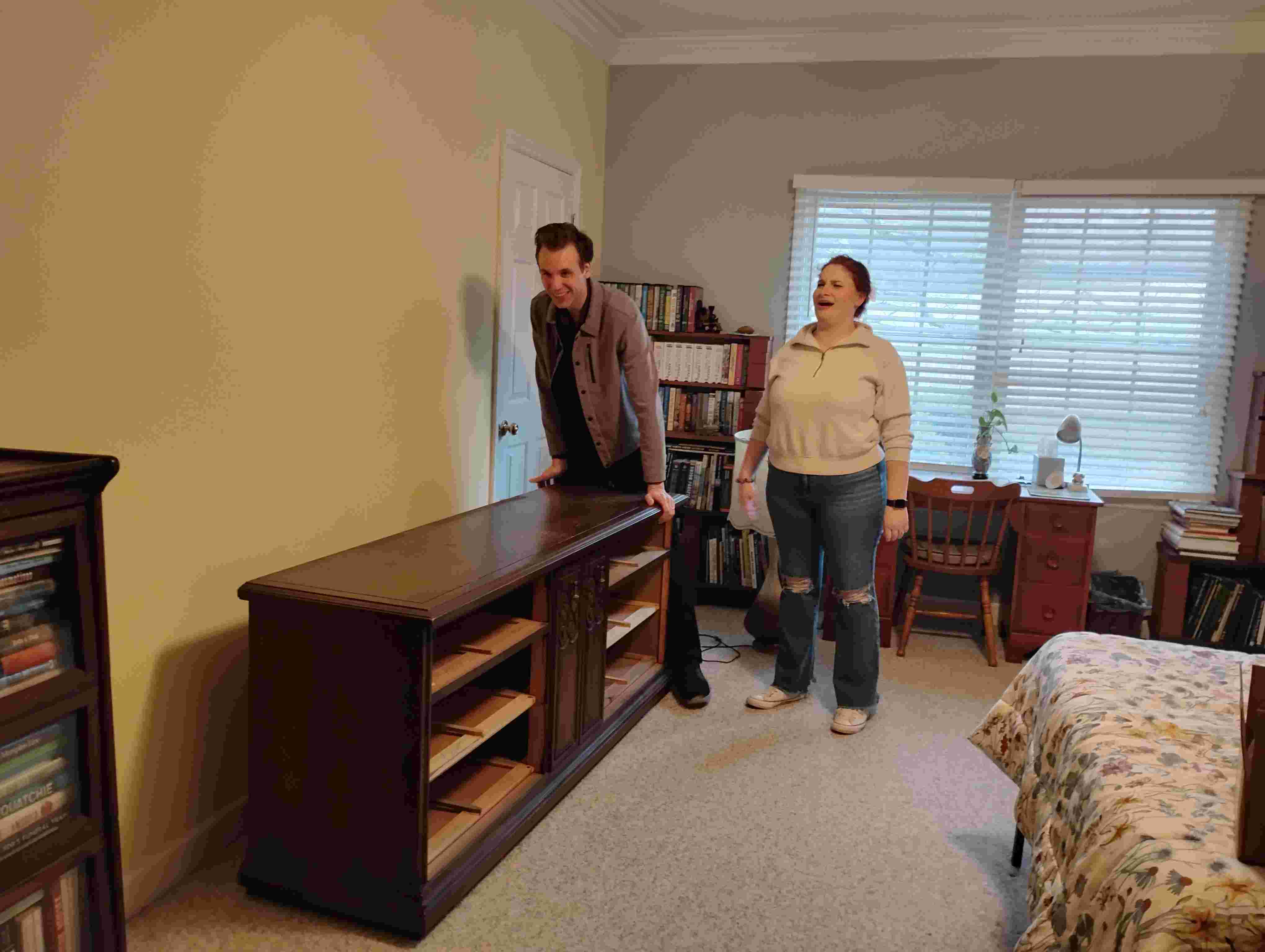 After eating Kathie’s lovely lunch, Lise persuaded the group to move a heavy dresser into the yellow guest room.