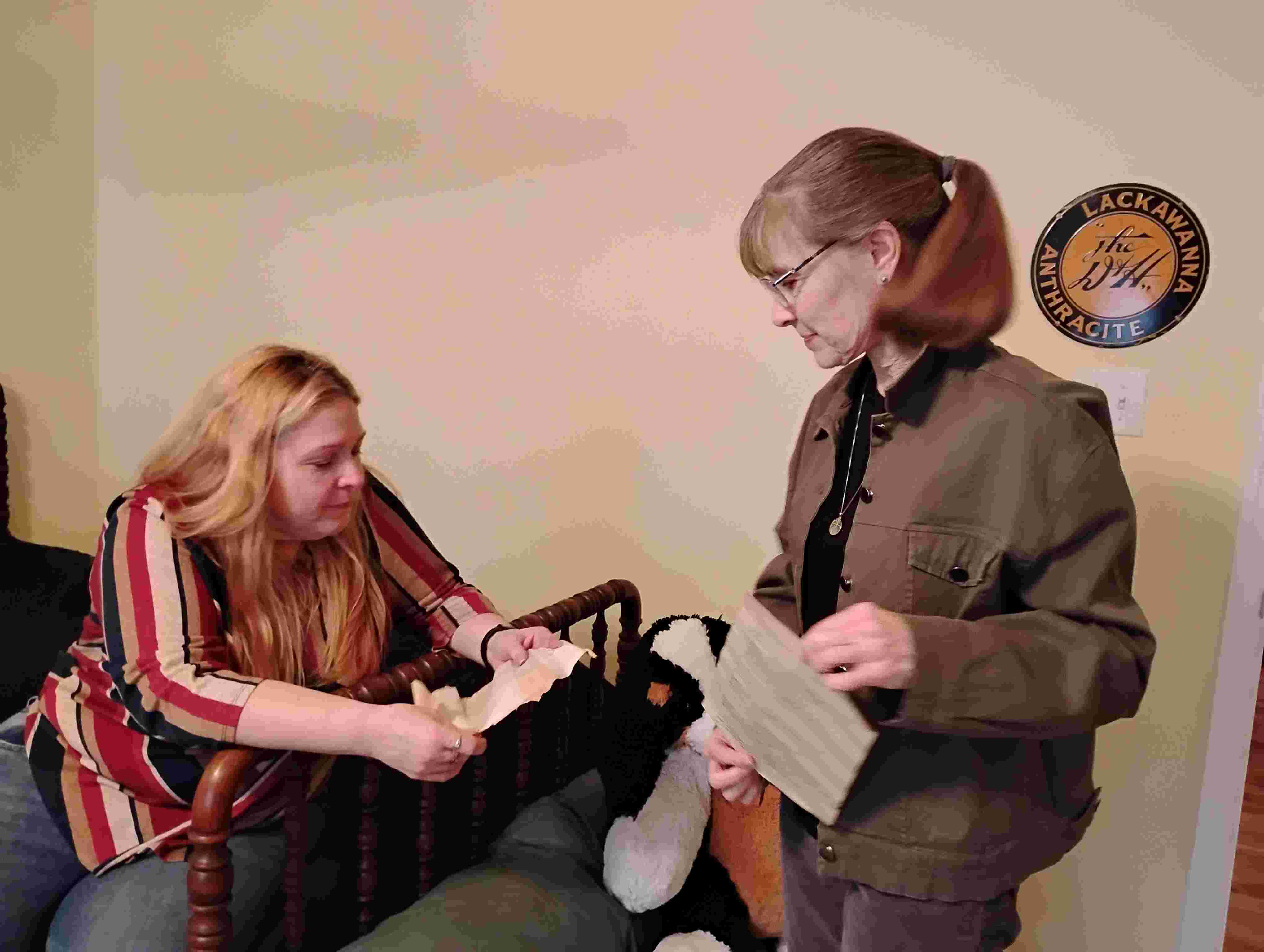 They found two old papers under a drawer. Kathie and Nathaniel were able to read them, and Lise put them under a heavy book to flatten them. I will try to scan them in a few days.