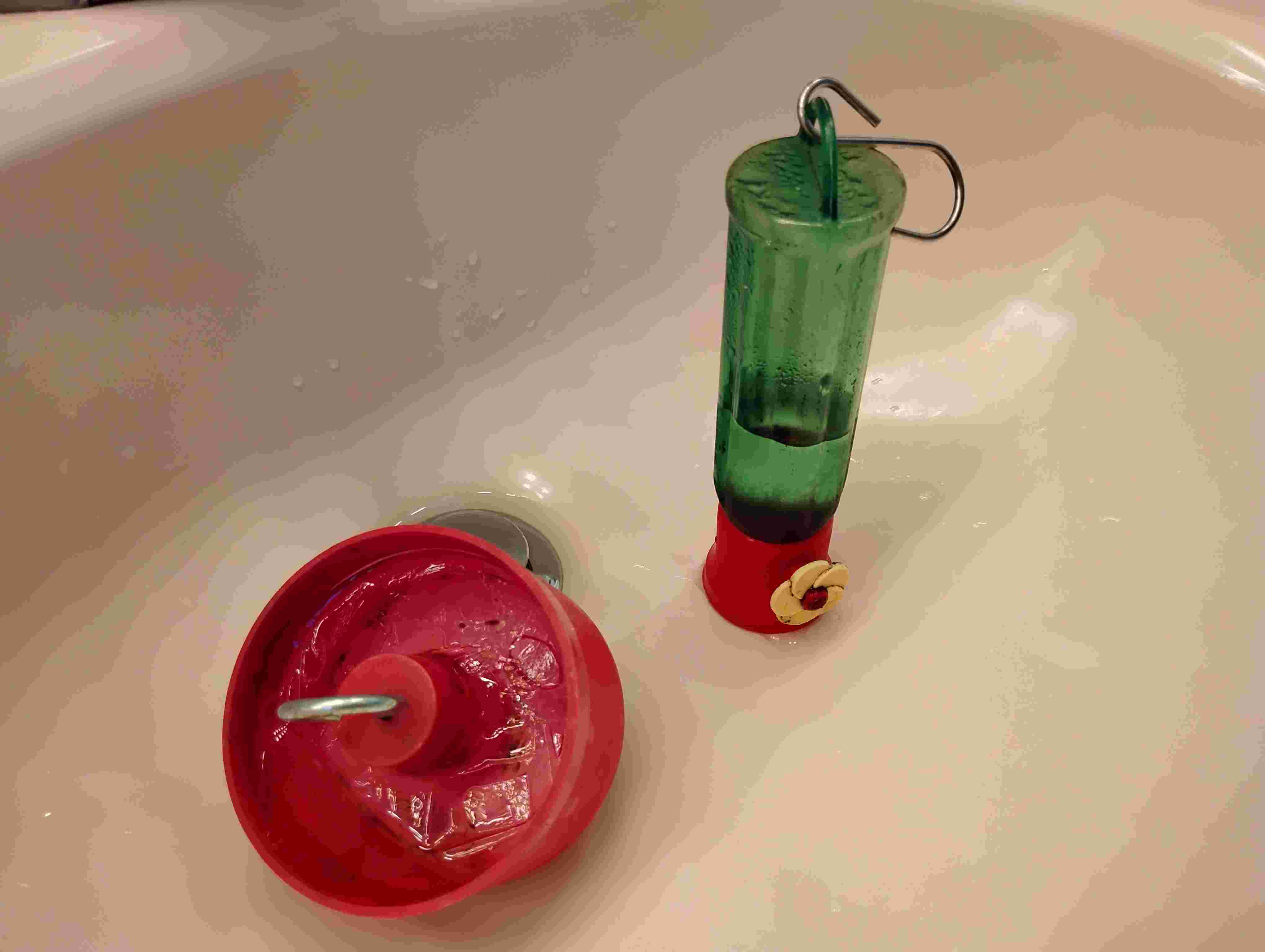 The feeder beyond the back porch was the last and most exciting. I took down feeder and moat, neither of which had frozen. As I turned to take them inside, I heard a hummingbird right beside me and saw a flash of movement near the hand that was holding the feeder. I think that bird would have taken a sip if I hadn’t been moving! I didn’t stop in time and went on to take the things inside. As soon as I came in from walking, I put everything outside again.