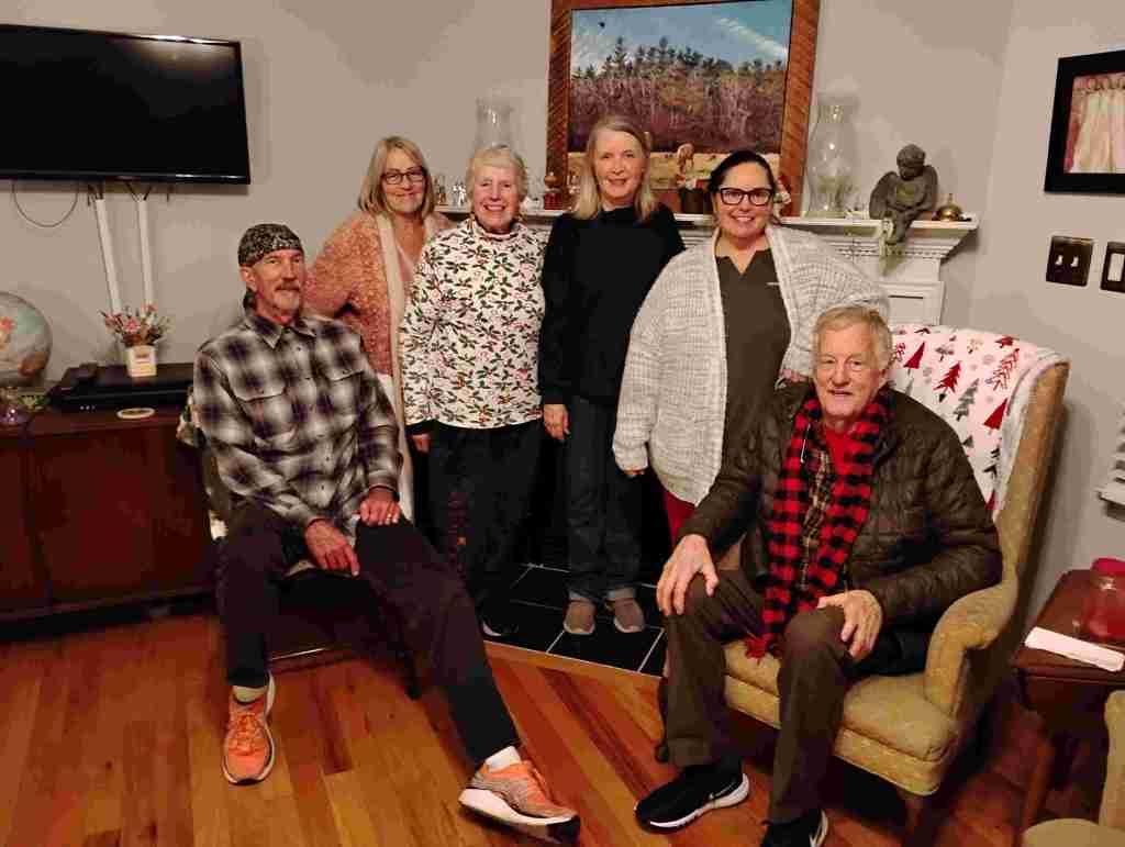 We were interested in hearing about Joyce’s Christmas, spent in a bed and breakfast house in the mountains of Arkansas. Her two daughters, one son-in-law, two grandchildren, and a dog were with her. It was wonderful to be together, but the nightmarish side was sharing the house with roaches, spiders, and deer ticks (the ones that carry Lyme disease).