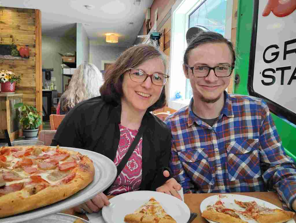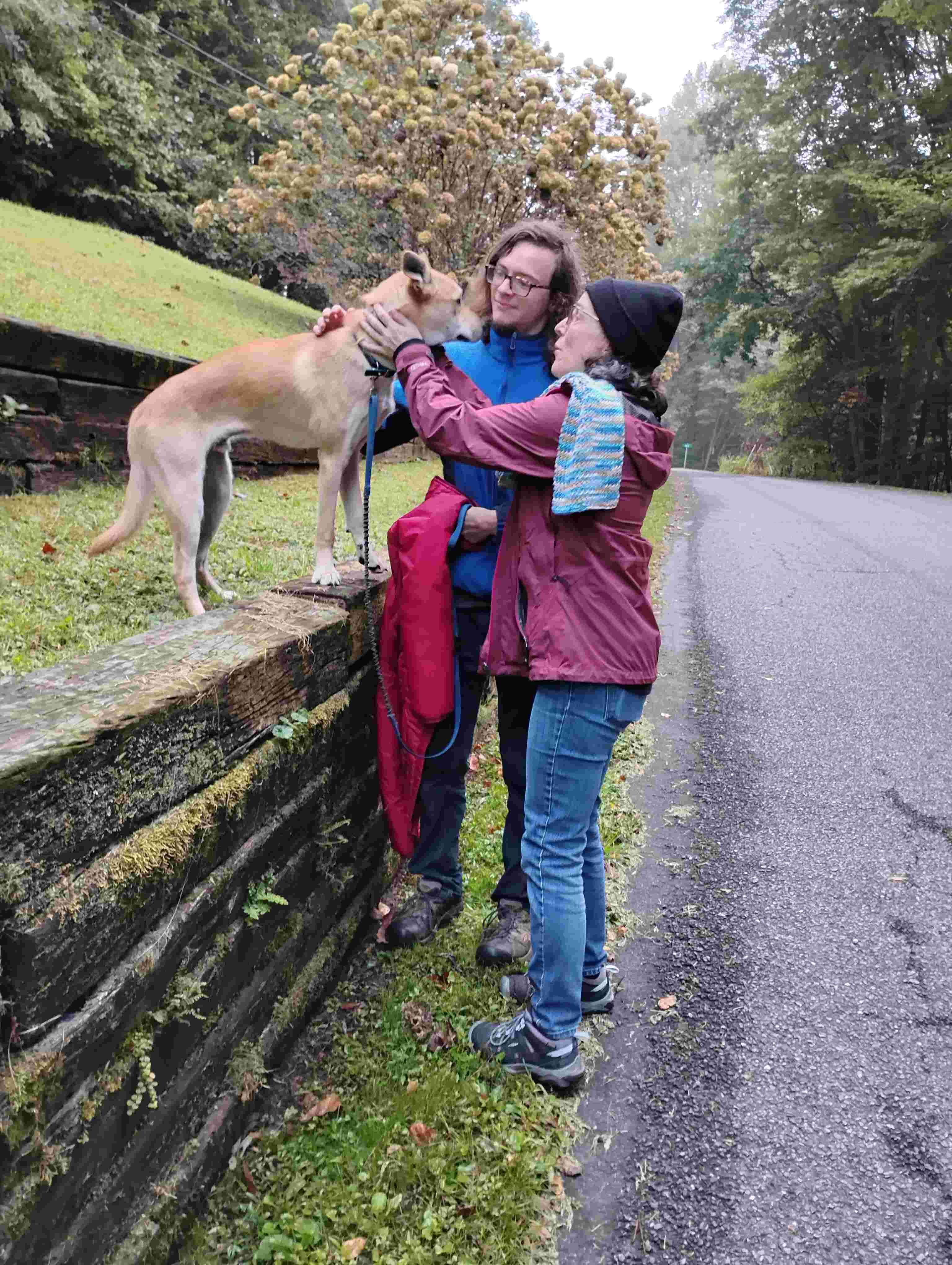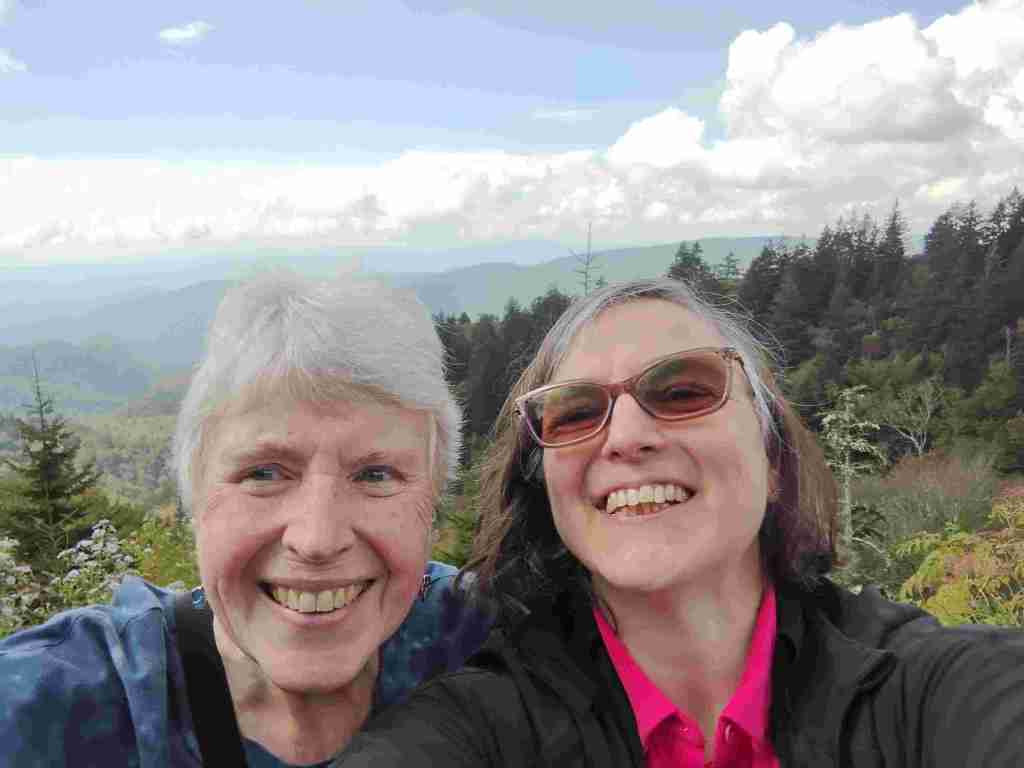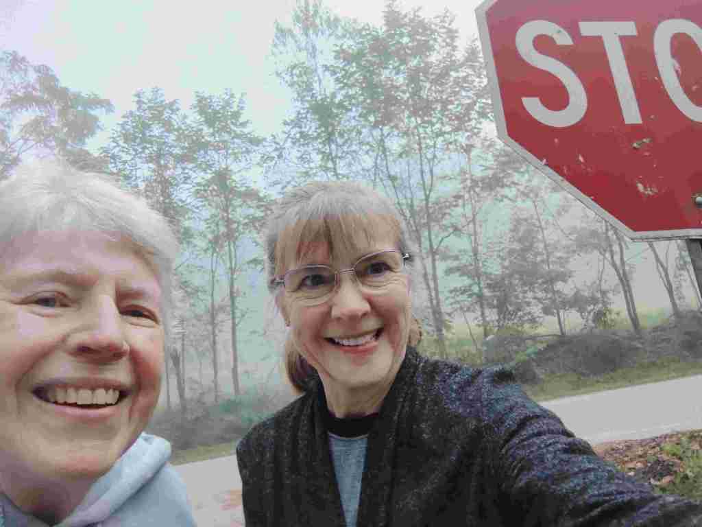 Before driving to Bob’s house, we took a walk to the stop sign. The photo was a joint effort. I held the phone, and Kathie tapped the screen.