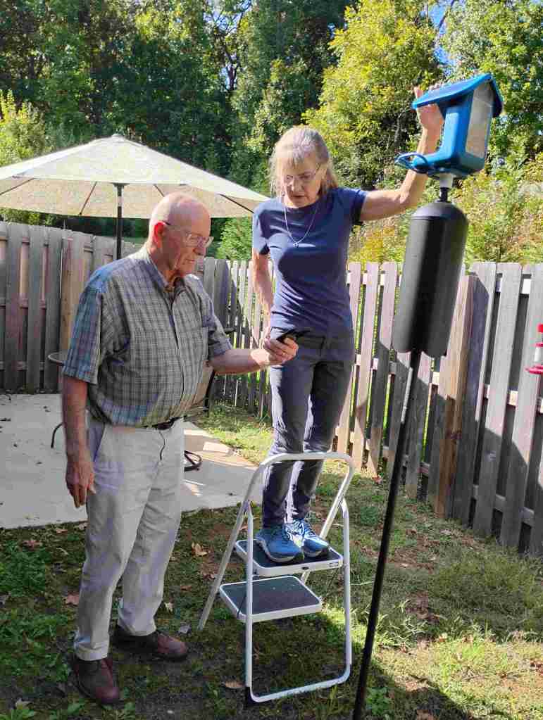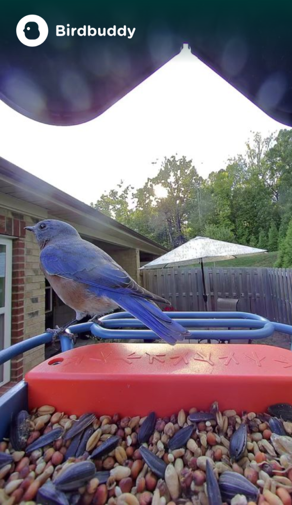 Kathie helped Bob re-pair the fancy bird feeder after a recent problem with the internet provider. The feeder has a camera that takes short videos when birds land on it. I was thrilled to see a photo of a blue bird that Bob extracted and sent to us.