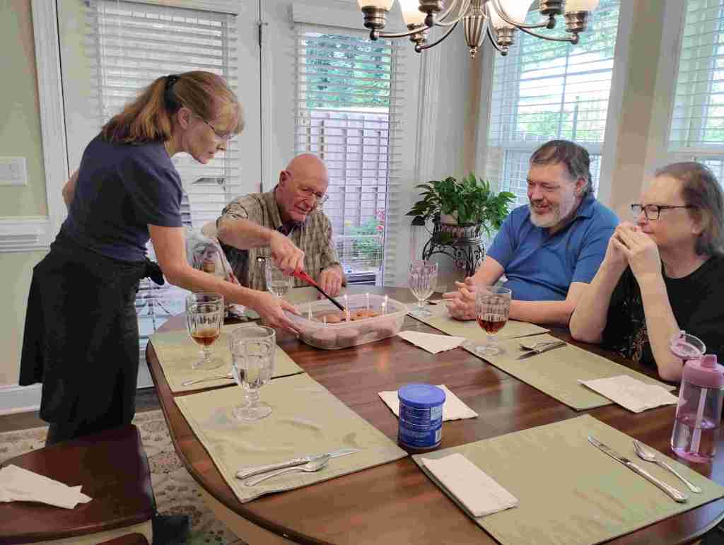 This photo shows Bob’s wife Beth with him and Kathie. We played a game of guessing what item was on a card with one team member using words for the first round and acting the word without speaking on the second. I found out that a deaf person is at a distinct disadvantage in that setting. I didn’t hear crucial things, although Bob did better than I did. It was fun, anyway.
