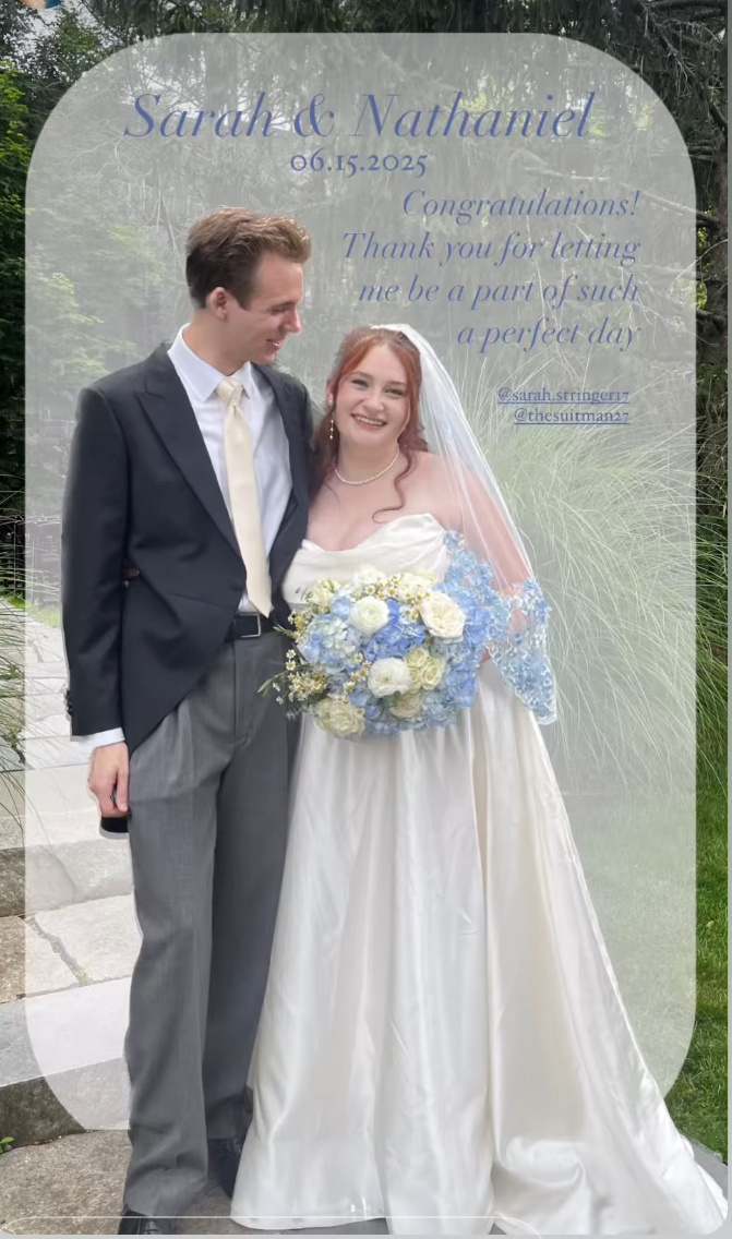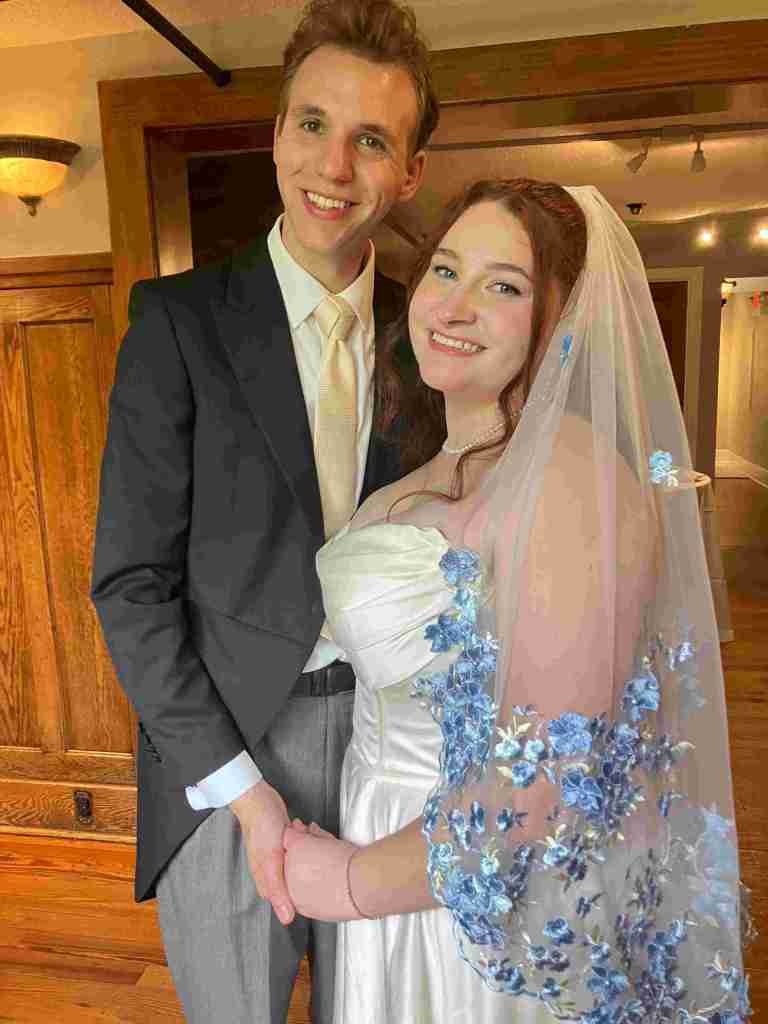I loved grandson Nathaniel’s and Sarah’s wedding. They concentrated on family and friends, so that everyone felt the closeness. I’ve seen photos of weddings where there were up to twelve attendants, including a flower girl, ring bearer, bridesmaids and groomsmen. Not this one!The ceremony was held outside in a small garden surrounded by hedges and trees. Nate had his mother walk him to the arbor, followed by his dad. Sarah’s mother escorted her daughter down the aisle. She arranged Sarah’s dress, and took her bouquet before sitting with her family. They requested no photographs during the ceremony, so it was peaceful and reverent.