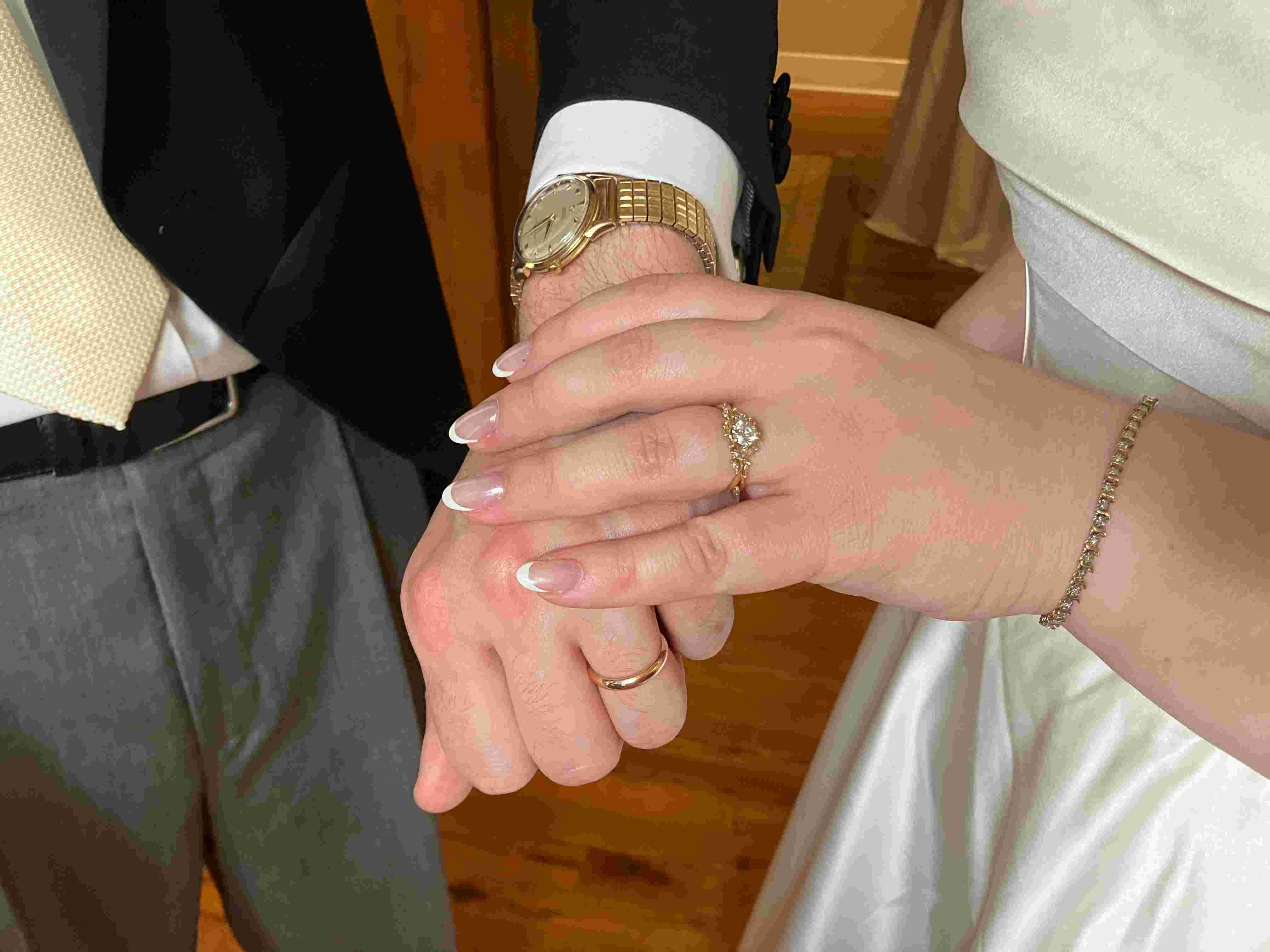 I was thrilled that Nathaniel asked to use my husband’s wedding band. He also wore John’s watch, which he’d had repaired. Kate had John’s ashes in a pendant, and BIL Thom wore one of John’s ties which had steam engines on it. There were probably other mementos present on the other side of the aisle.
