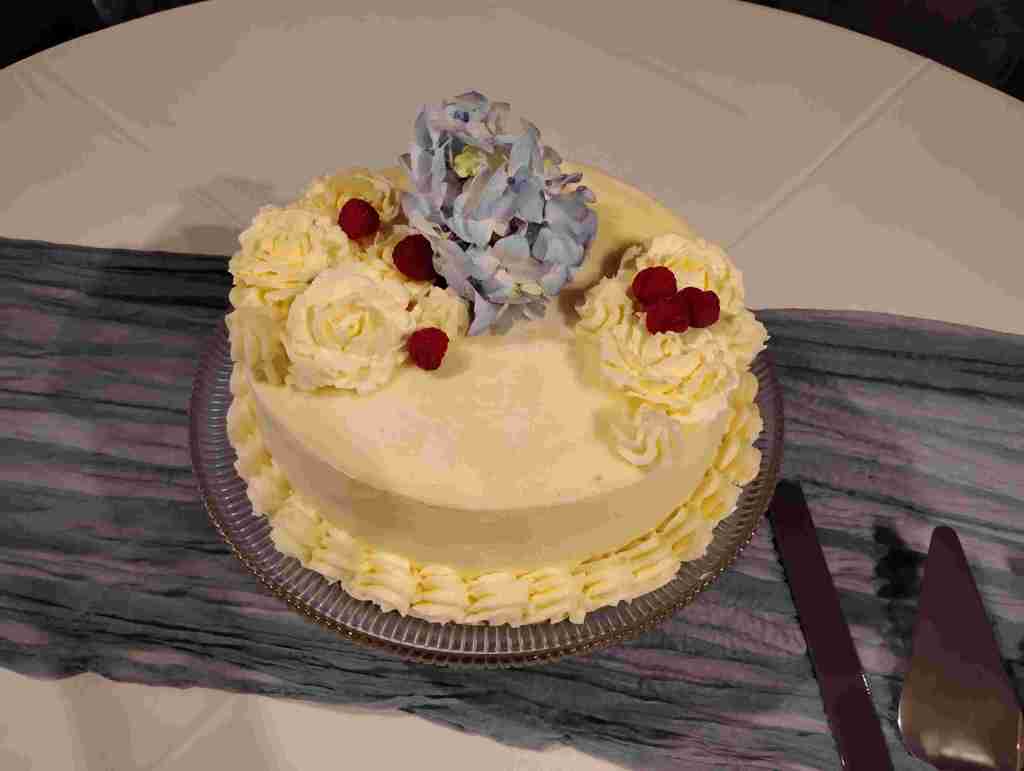 The wedding cake was on display, and everyone admired it, knowing Nathaniel had made it. He had also baked the sheet cake that was served to us. Needless to say, it was delicious.