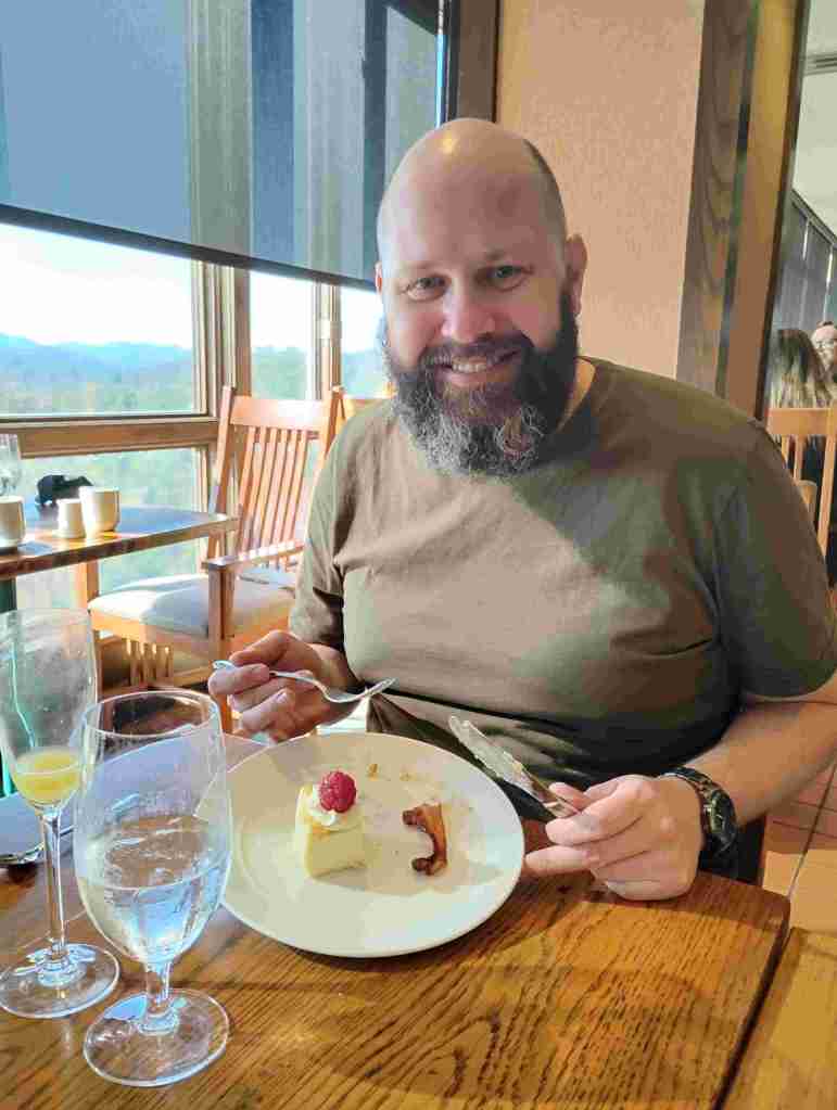 Lise left 11 days ago, and yes, I have recovered. I’ve heard of mothers my age crying when their children leave, but I don’t do that. I grieve quietly a few days before Lise leaves. When the departure is imminent, I tell myself that she has airline tickets and has to go back to her normal life. It is also time for me to resume my single life. The photo shows her eating the last meal before leaving.