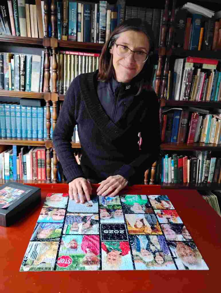 A few days ago I took the innards of the family jigsaw puzzle apart, leaving the outer edge complete. I cheated, though. I put the left section of pieces on the left side of the puzzle, and the right pieces to the right. The middle was jumbled, but still in the middle of the puzzle. I have been delighted to work on it, putting in a few pieces a day. It’s so easy when I can see the pieces near where they belong, otherwise I’d be endlessly walking around the table. I may take it apart that way, putting the pieces in three separate plastic bags. I will definitely thank myself if I do that.