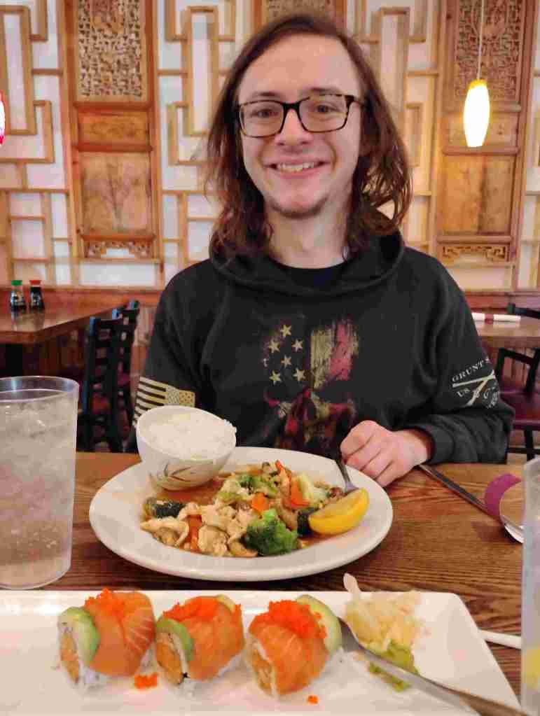 Grandson David kept himself in the background while all the company was here. That was true of texting from daughter Kate and son John $, too. I appreciated being free to concentrate on people in the house. David and I went to Watami Noodle later in the week.
