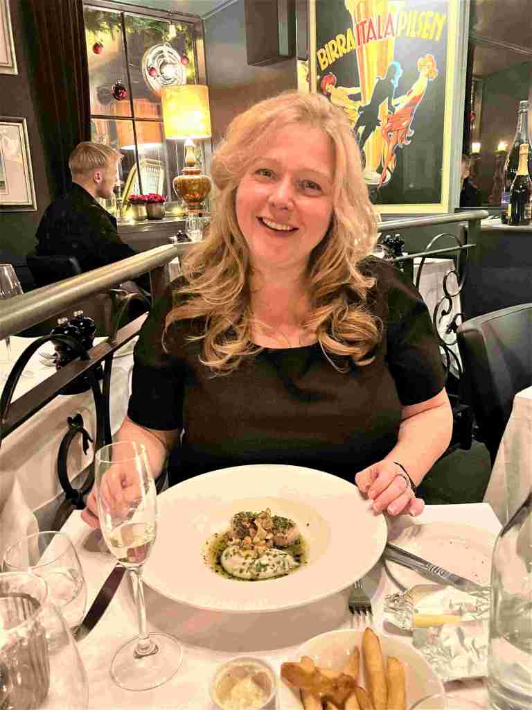 Lisa said beforehand that she would be very happy if she could watch the football game. At the table I asked her when the game would begin. “Six minutes ago,” she answered. She and Logan watched the game quietly on a phone, not intruding on the rest of us at all. I thought it was a brilliant solution. Everyone got what they wanted.