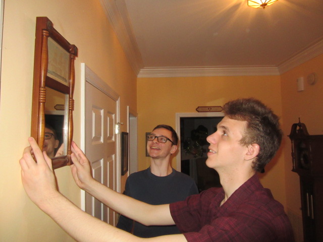 After we came home, David and I were relaxing in easy chairs. I said, “I don’t think Nathaniel moved the mirror down.”