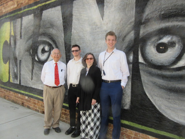 After church and the luncheon, we walked through Forest City. It was a great break on the trip to take Nathaniel back to Charlotte. I was looking for photo ops, knowing Kate wanted a picture of her with her sons. Because there were eyes painted on the building, I made them pose on the sidewalk.