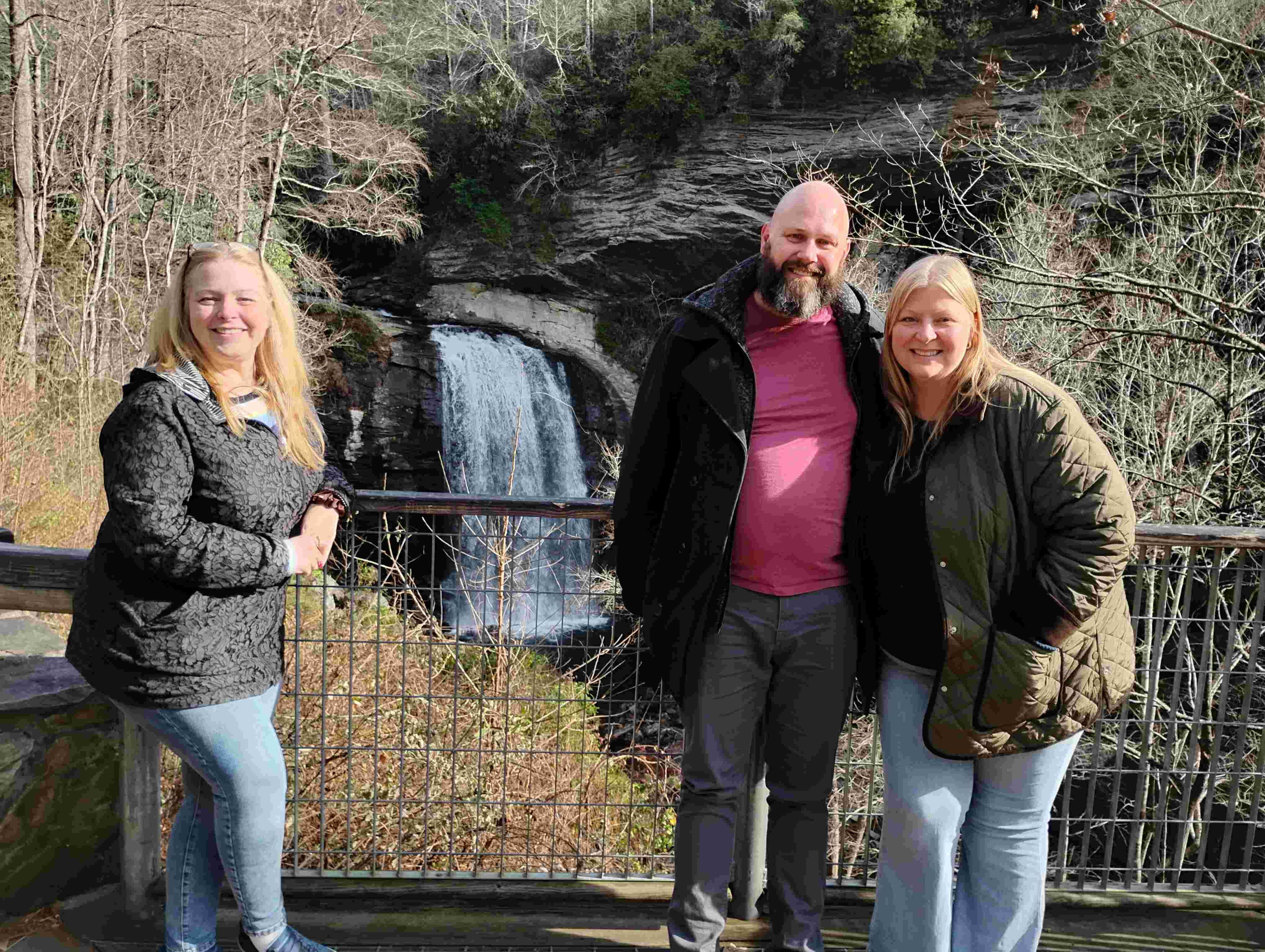 Our outing for the day after Thanksgiving was going to Sunburst Falls. After Magda went close to the falls, we drove on the Blue Ridge Parkway until sunset. At an overlook, the girls got out to watch the sun go down. They were frozen when they returned to the car. I don’t know how cold it was then, but Magda and I had walked in the morning when it was 22 F (-5.55C).